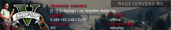 1 | [1.1] [roleplay] Los Angeles Roleplay | 5.249.165.248:22010 | 0/0 | 0   |