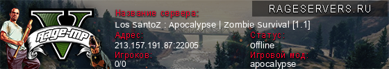 1 | Los SantoZ : Apocalypse | Zombie Survival [1.1] | 213.157.191.87:22005 | 0/0 | 0   |