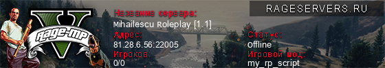 | 1 | Mihailescu Roleplay [1.1] | 81.28.6.56:22005 | 0/0 | 0   |