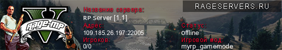 | 1 | RP Server [1.1] | 109.185.26.197:22005 | 0/0 | 0   |