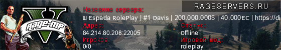Информация о сервере ⭐ Espada RolePlay | #1 Davis | 200.000.000$ | 40.000EC | https://discord.gg/w4QDz5f [1.1]
