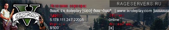 | 1 | 🌴 IX Roleplay [GEO] 🇬🇪 | www.ixroleplay.com [ქართული] [rolep [1.1] | 5.178.111.247:22005 | 8/500 | 0   |