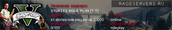 | 1 | STORIES ROLE PLAY [1.1] | s1.stories-role-play.pp.ua:22000 | 0/100 | 0   |
