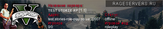 - IP Адрес: test.stories-role-play.pp.ua:22007