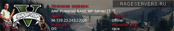 | 1 | AMP Powered RAGE:MP Server [1.1] | 94.139.23.243:22005 | 0/0 | 0   |