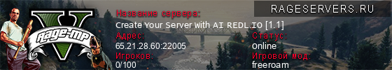 | 1 | Create Your Server With AI REDL.IO [1.1] | 65.21.28.60:22005 | 0/100 | 0   |