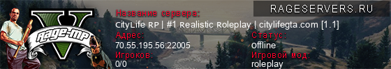 | 1 | CityLife RP | #1 Realistic Roleplay | citylifegta.com [1.1] | 70.55.195.56:22005 | 0/0 | 0   |