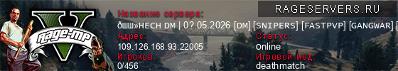 | 1 | 👻HECH DM | 0?.05.2026 [DM] [SNIPERS] [FASTPVP] [GANGWAR] [VOICE] [1.1] | 109.126.168.93:22005 | 0/456 | 0   |