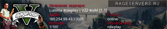 | 1 | Lumina Roleplay [1.1] | 185.254.99.43:22005 | 1/100 | 0   |
