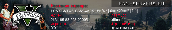 | 1 | LOS SANTOS GANGWARS [EN/DE] 🇩🇪 [1.1] | 213.165.83.228:22005 | 0/0 | 0   |