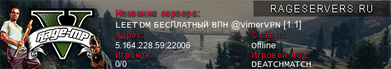 | 1 | LEET DM БЕСПЛАТНЫЙ ВПН @VimerVPN [1.1] | 5.164.228.59:22006 | 0/0 | 0   |