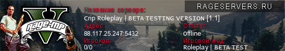 - Игровой мод: Roleplay | BETA TEST