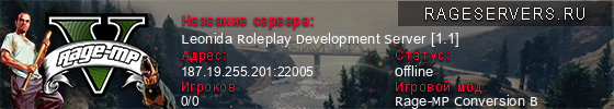 | 1 | Leonida Roleplay Development Server [1.1] | 187.19.255.201:22005 | 0/0 | 0   |